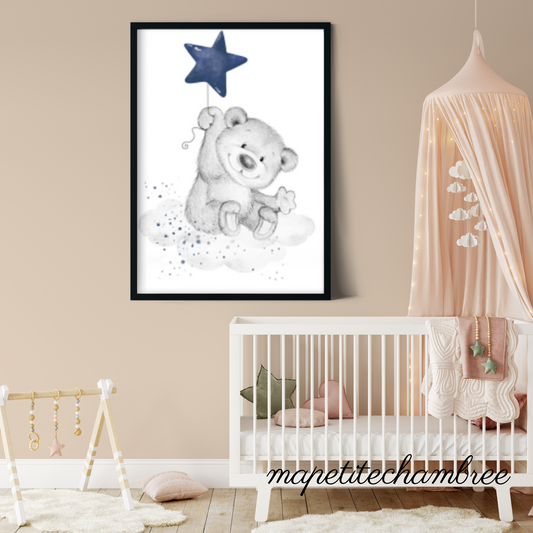 Affiche ourson chambre garçon bleu - Décoration Chambre de Bébé et enfant - Lot de 3 affiches