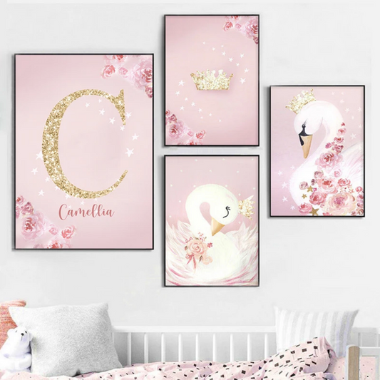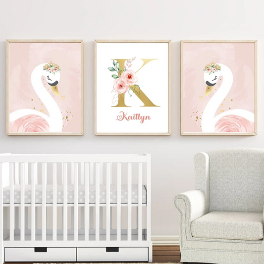Cygne Majestueux Rose Or - Décoration Chambre de Bébé et enfant