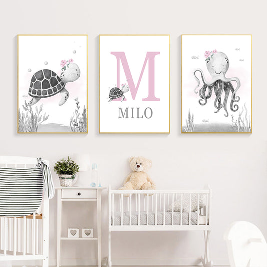 Animaux de la mer Tortue et Pieuvre - Décoration Chambre de Bébé et enfant